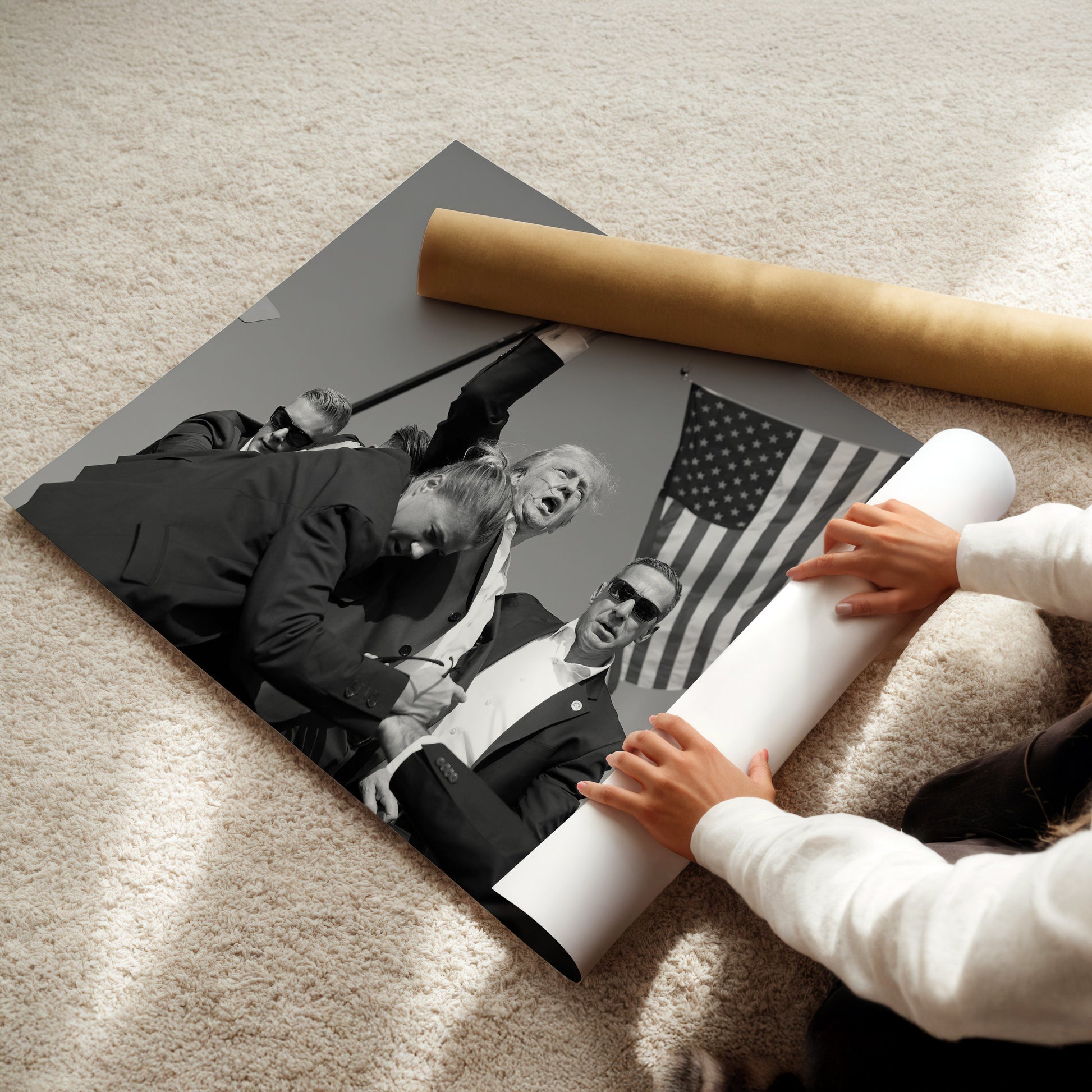 Donald Trump Rally Attack Scene Wall Art - Black and White Dramatic Historic News Photography Poster - Bold Political Home Decor Print