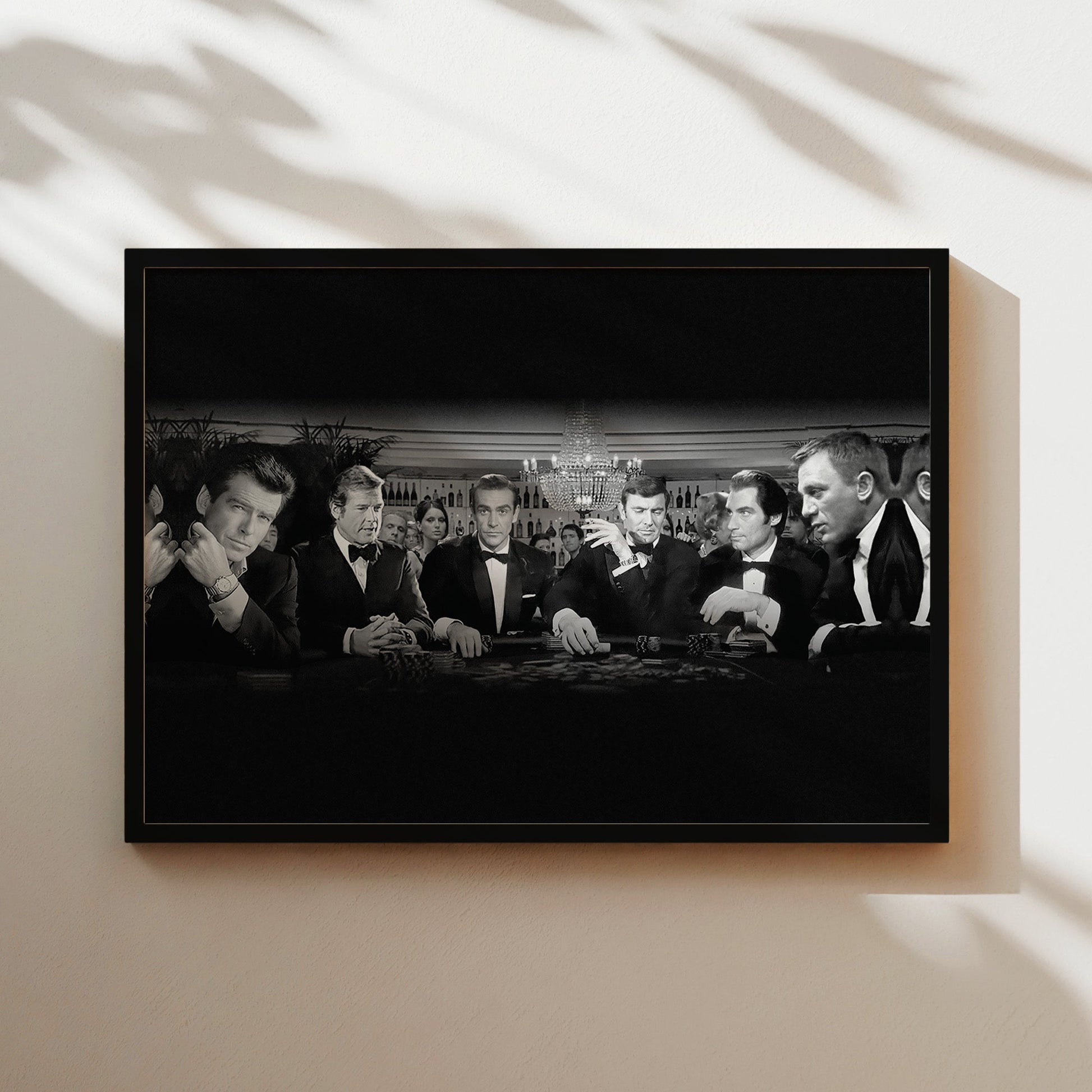 All James Bond Actors Poker Night Wall Art - 007 Legends at the Casino Black and White Poster - Ultimate Spy Movie Decor - Man Cave Print