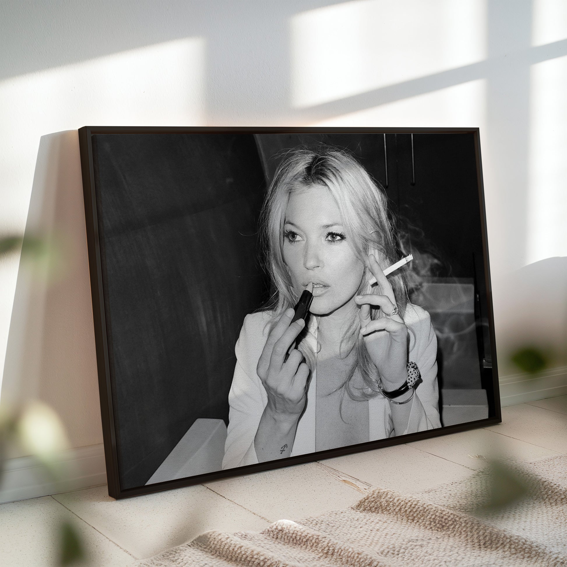 Kate Moss Smoking & Lipstick Glam Wall Art - 90s Supermodel Fashion Icon Black and White Poster - Bold Cool Girl Decor - Vogue Vibes