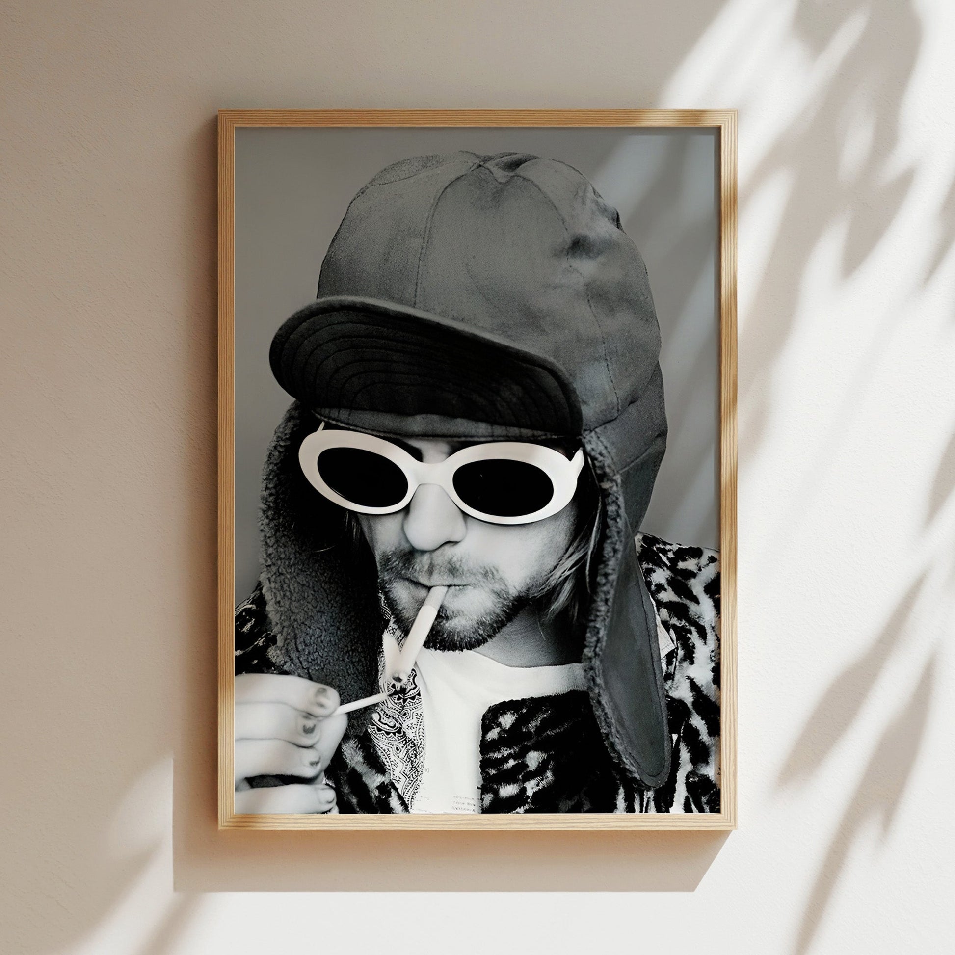 Kurt Cobain Lights Up Wall Art - Grunge Music Poster, Iconic Rock Illustration, Nirvana Canvas Print, 90s Legend Decor, Edgy Artwork