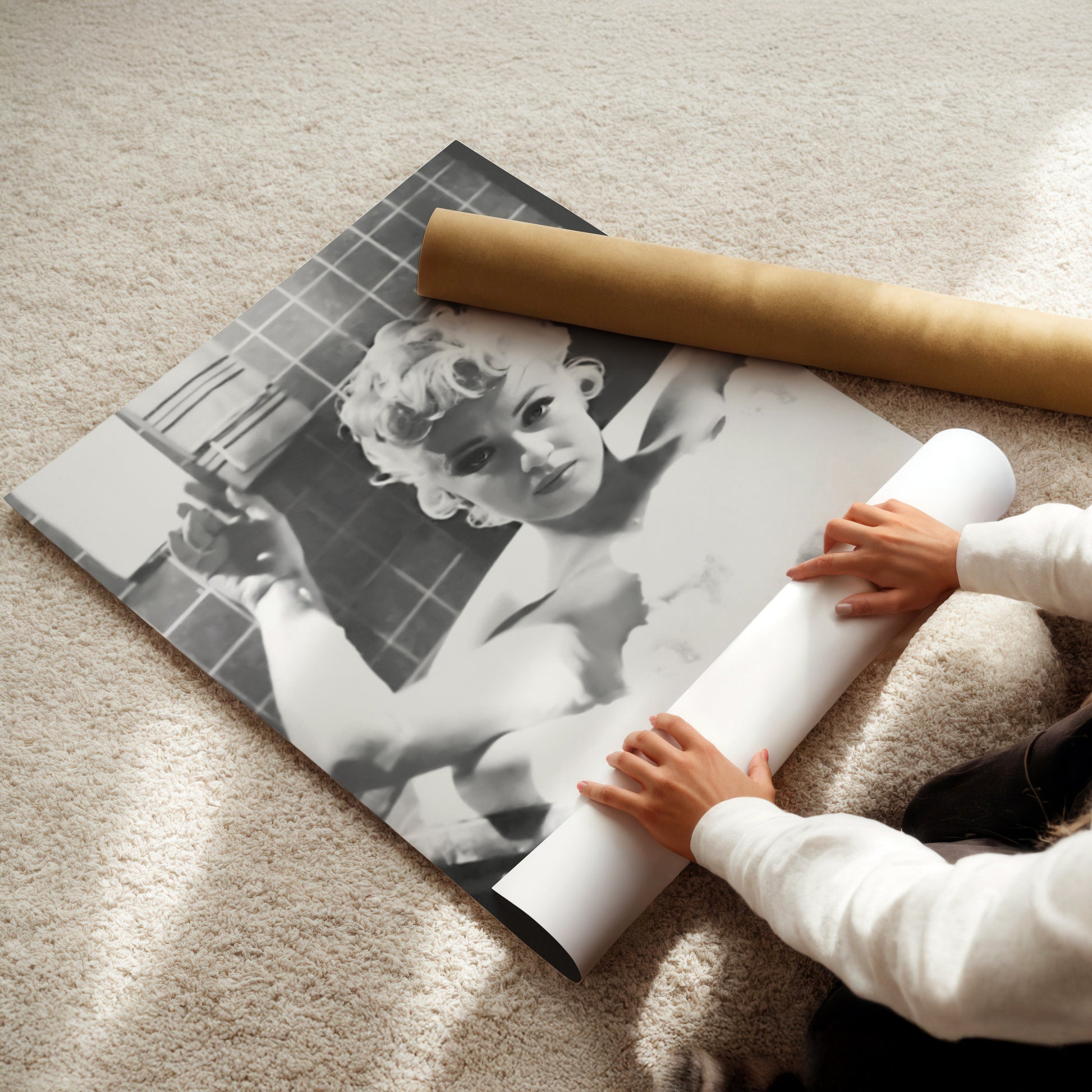Marilyn Monroe in Bath Canvas Print, Vintage Hollywood Star Wall Art Poster, Classic Glamour Icon for Elegant Bathroom or Bedroom Decor
