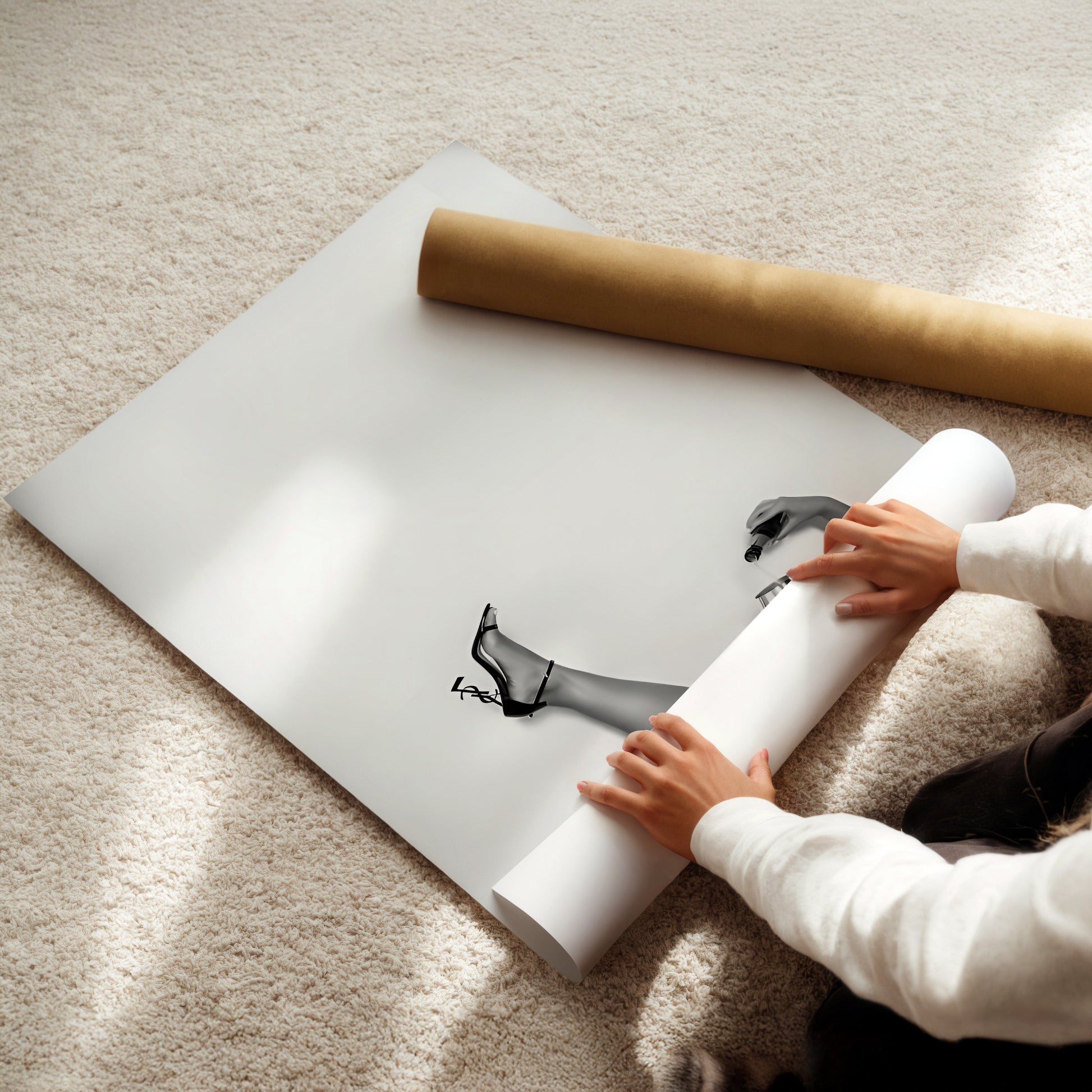 The Good Life Wall Art - Black & White Feminine Minimalist Poster, Chic Legs Up Photo Print for Modern Bedrooms or Glam Fashion Spaces