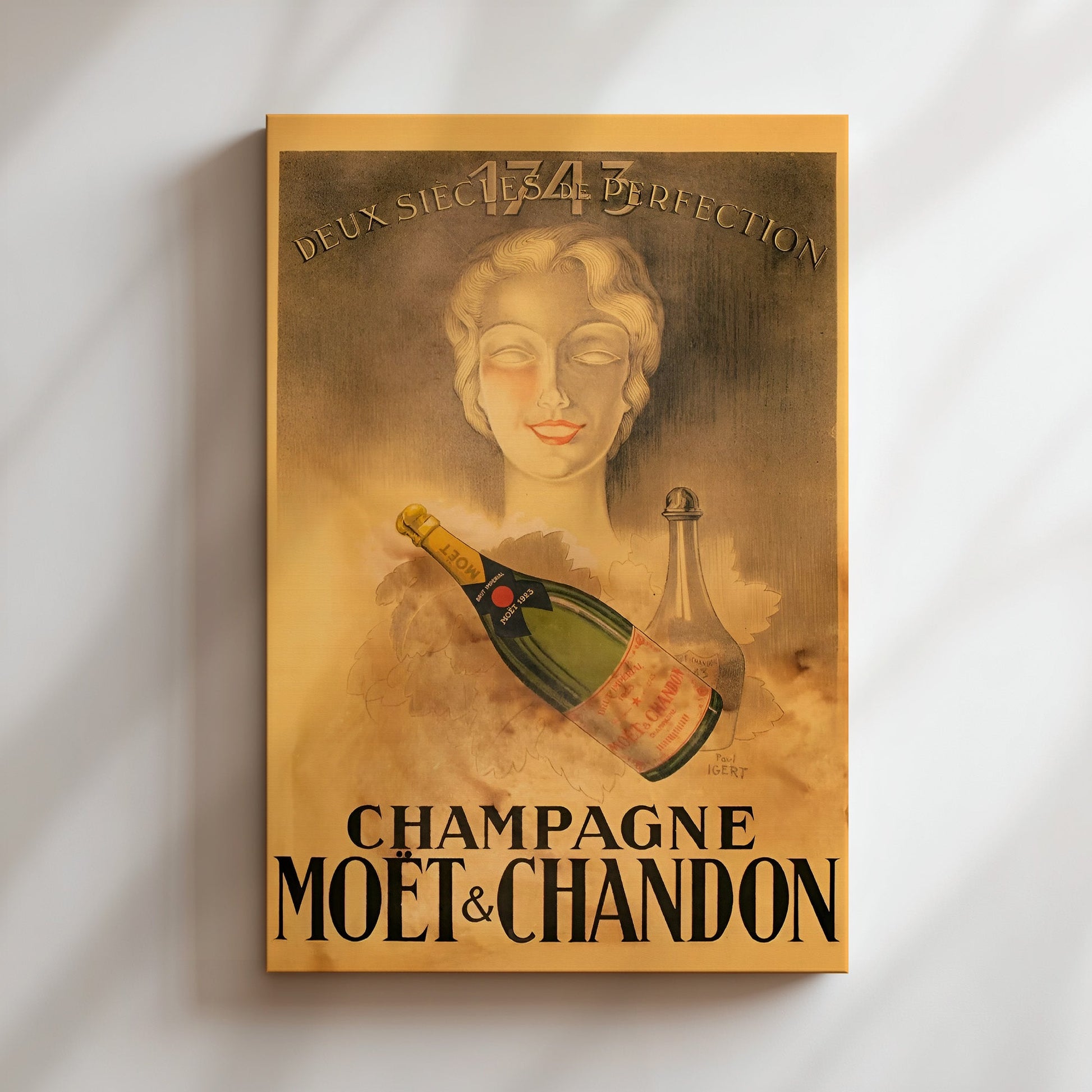 Vintage Moet & Chandon Champagne Poster - Classic French Advertisement Print, Elegant Art Deco Bar Wall Decor for Kitchens or Dining Rooms