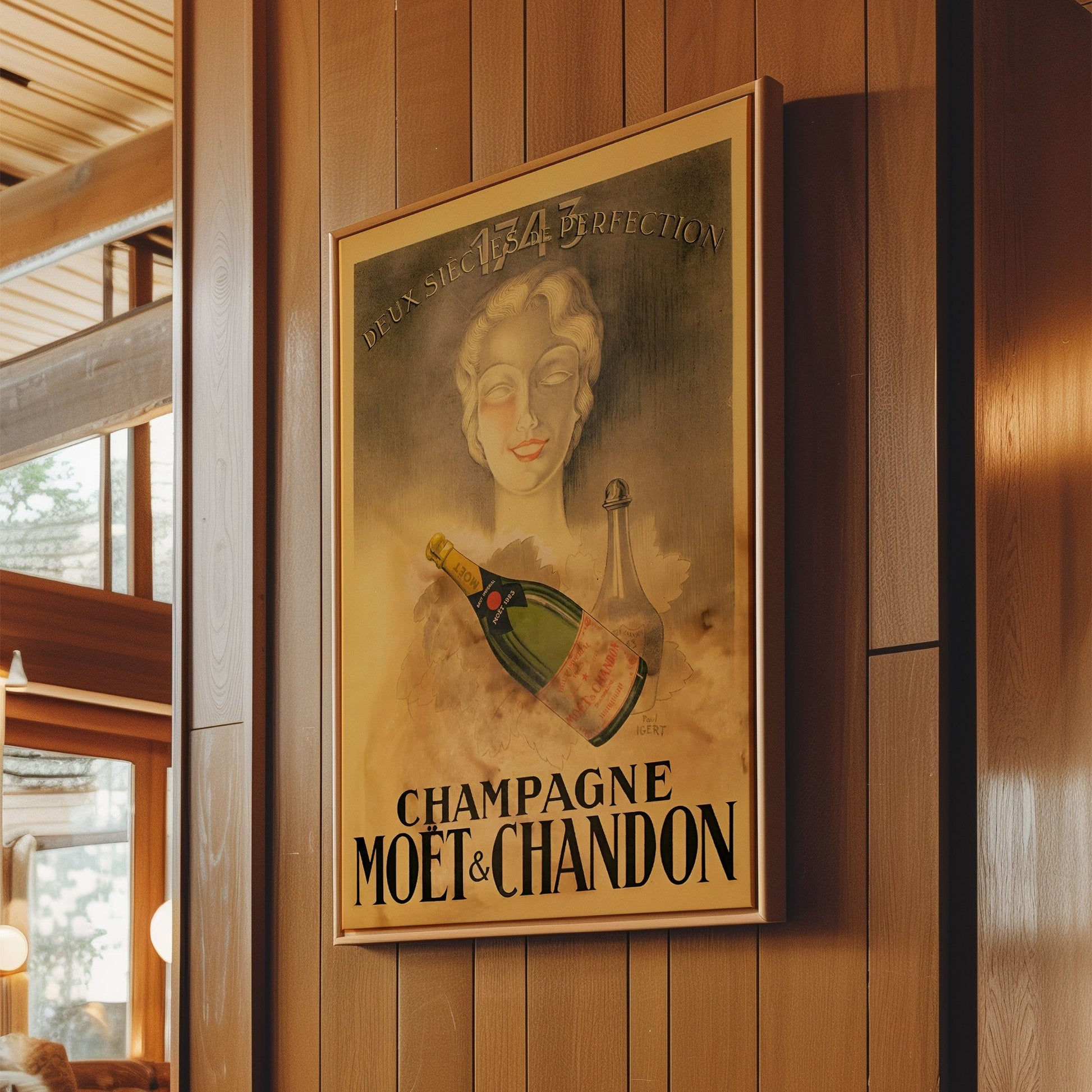 Vintage Moet & Chandon Champagne Poster - Classic French Advertisement Print, Elegant Art Deco Bar Wall Decor for Kitchens or Dining Rooms