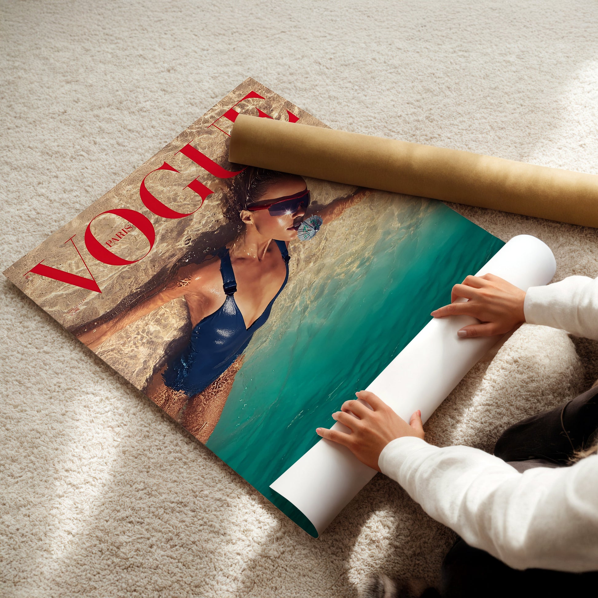 Vogue Beach Cover Poster - Underwater Fashion Photography Print, Summer Glam Editorial Wall Art for Coastal Interiors or Fashion Lovers