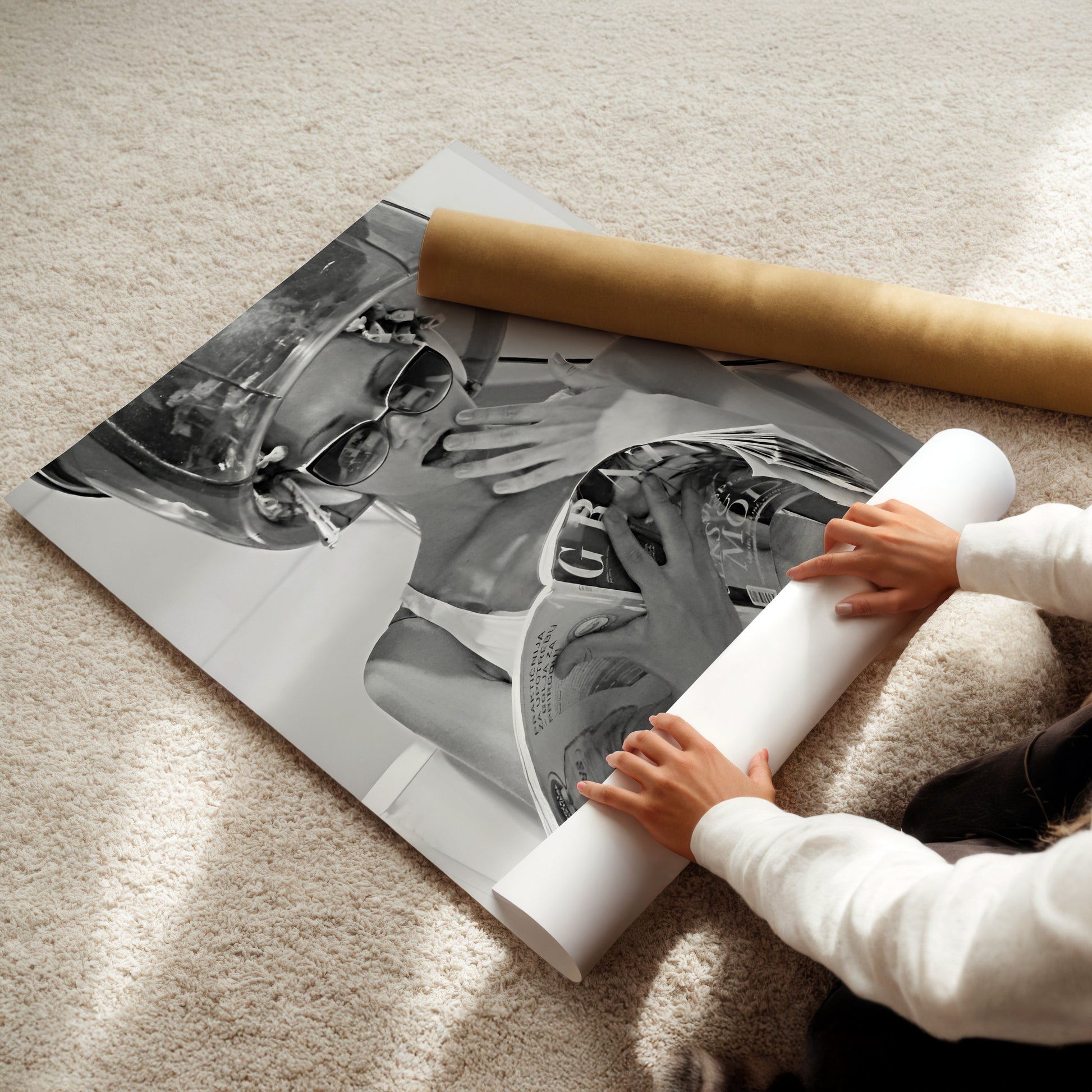 Woman at the Hair Salon Wall Art - Retro Black & White Glamour Print, Vintage Beauty Poster for Salons, Bathrooms or Chic Interiors